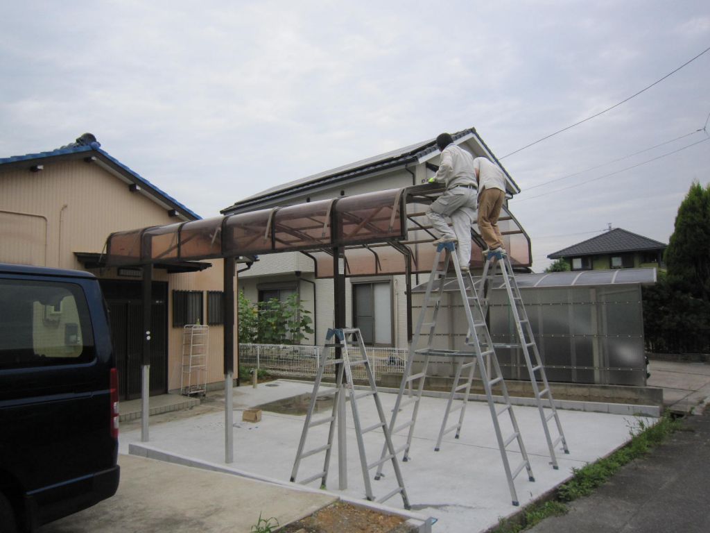 合掌タイプのカーポートです。僕が写っています(*^^*)オーノー