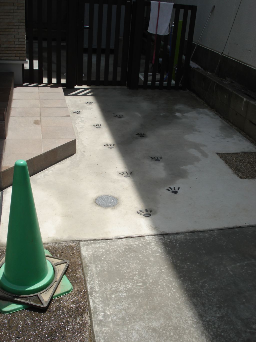 フェンスへのアプローチにはなんと!足跡が^m^ 石で作ってあります。