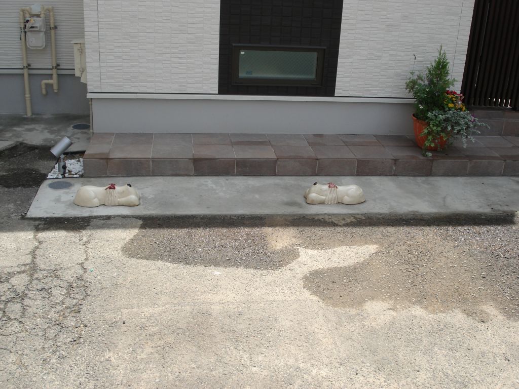 こちらには両脇にワンちゃんの置物?が