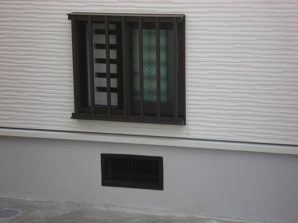 これはまたかわいらしい縦格子付窓ですね。ここは将来的にはワンちゃんの出入り口扉になるそうです。
