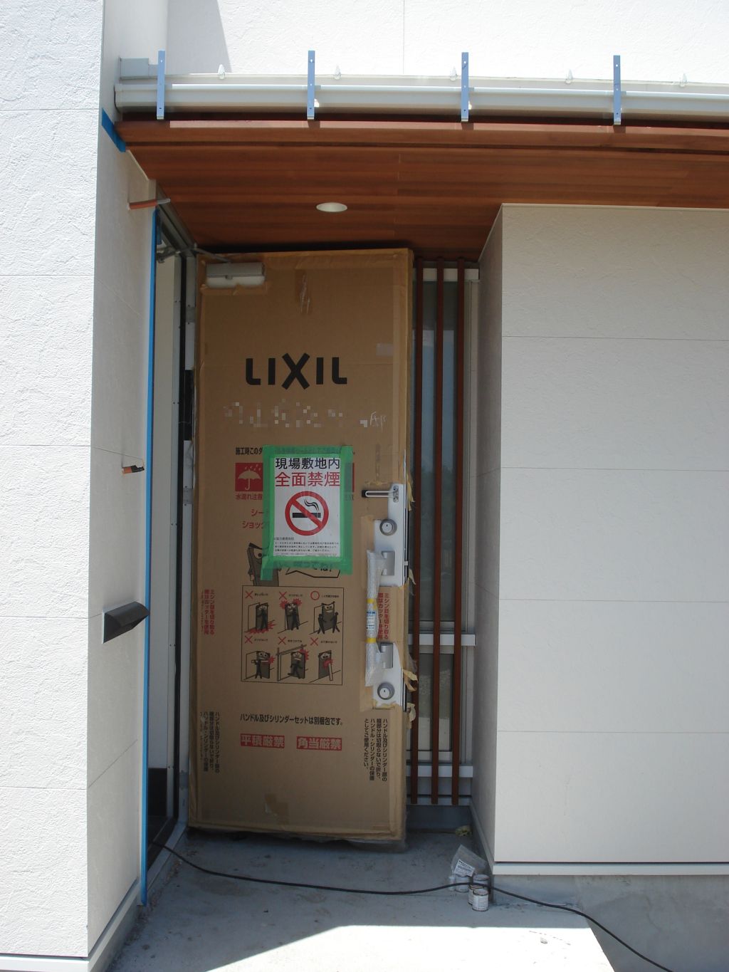 遠目には白一色ですが、玄関上部など木目にしてあるので落ち着いた感じに仕上がっていますね(^^)