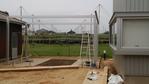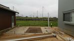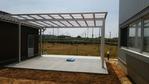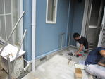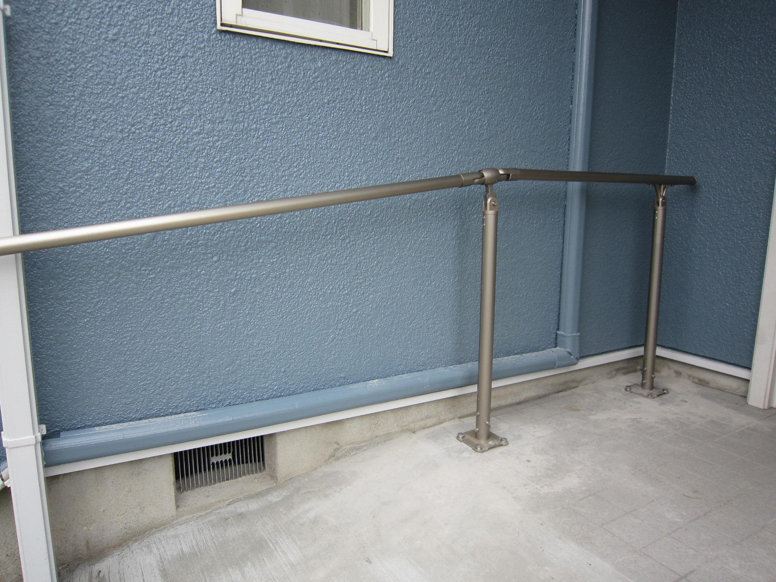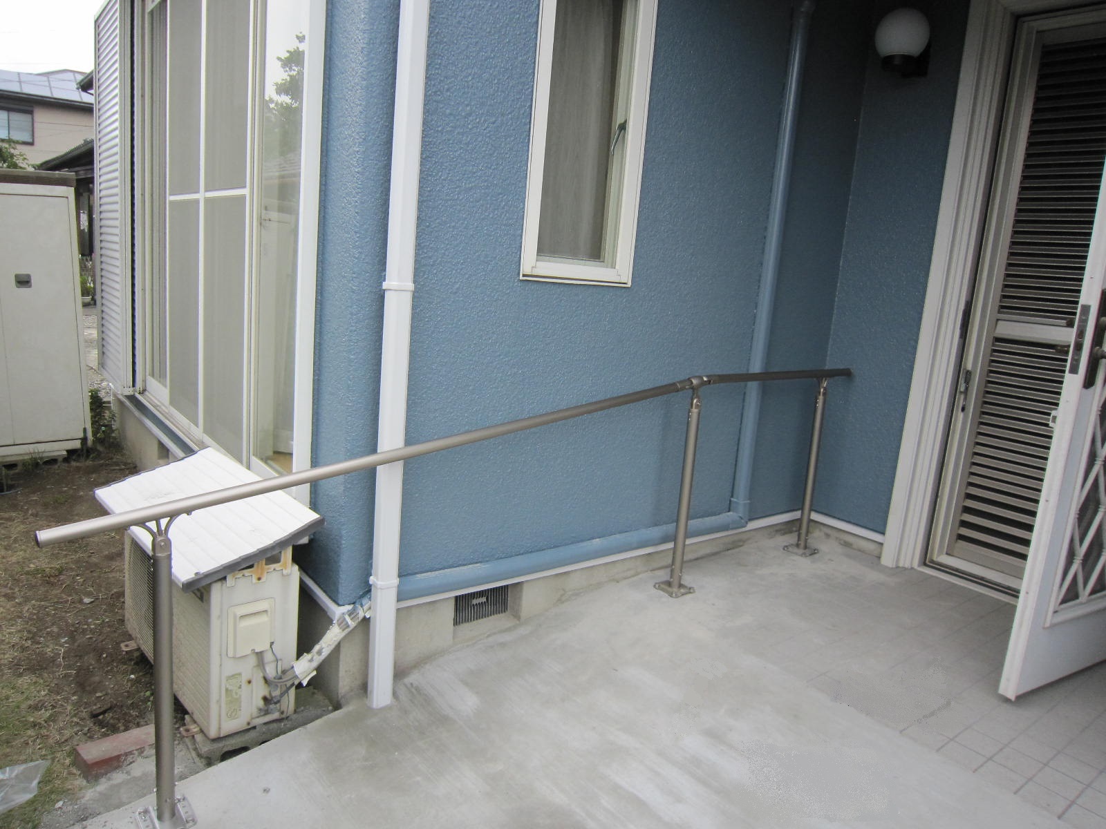 玄関前のアプローチに歩行者用補助手すりを取り付けています。