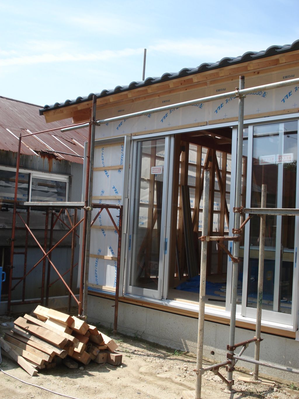 外壁の下地(胴縁)施工済み。あとはサイディングを貼ります。