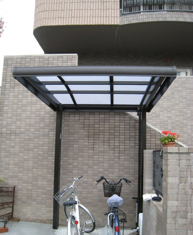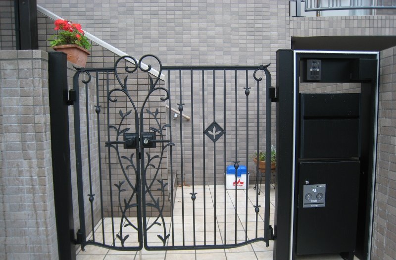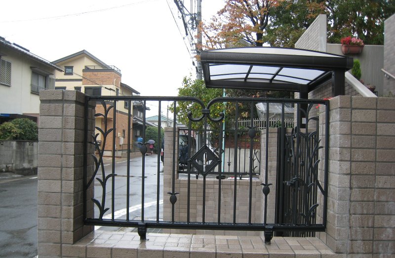 駐輪場と門扉、宅配ポスト、アルミ鋳物フェンス