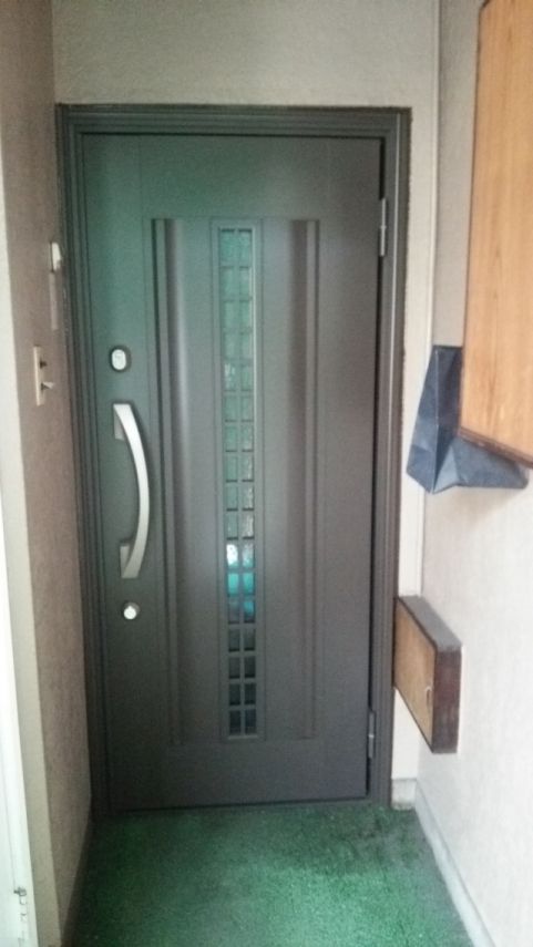 木製玄関ドアを、リシェント玄関ドアでプチリフォームしてきました。\(^^\)