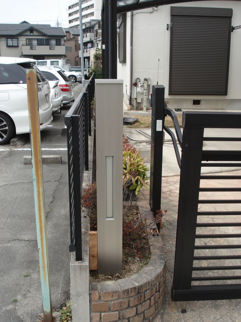ポスト付きの門柱を施工しました。